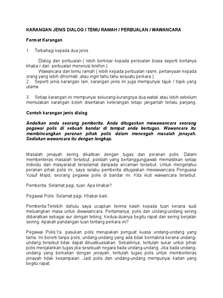 Contoh Karangan Dialog Temu Ramah / Contoh Karangan Jenis Dialog Spm Hontoh Otosection